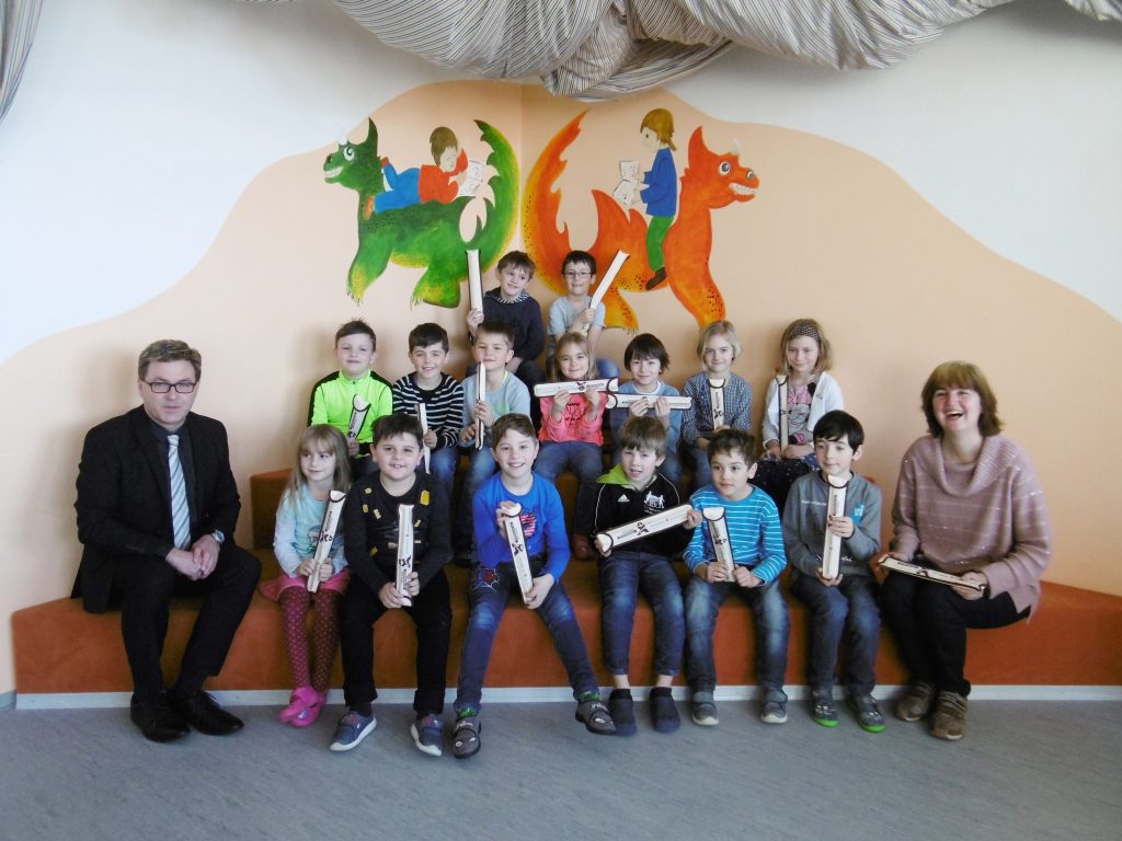 In diesem Schuljahr vertrat Maja Engelhard aus der 3. Klasse die Julian-Knogler-Grundschule beim Lesewettbewerb in der Grundschule Mertingen. Dort traten alle Schulsieger der umliegenden Schulen gegeneinander an. Die Teilnehmer mussten zuerst kurz ihr Lieblingsbuch vorstellen und dann ein Stück daraus vorlesen. Im zweiten Durchgang bekamen sie einen Abschnitt aus dem Buch „Das kleine Gespenst“ von Otfried Preußler und mussten diesen ebenfalls gut betont und lebendig dem Publikum vorlesen. Maja errang dabei einen 2. Platz. Begleitet wurde unsere Vorleserin von ihrer Klasse.