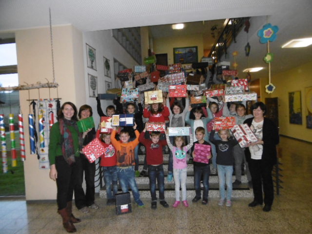 Die Marxheimer Grundschule beteiligte sich in diesem Schuljahr wieder an der Aktion „Geschenk mit Herz“ der humedia e.V. Die Schülerinnen und Schüler packten dazu bunte Schuhkartons mit Spielsachen, Kleidung und nützlichen Dingen, um bedürftigen Kindern in Osteuropa damit eine Weihnachtsfreude zu bereiten. So konnten von unserer Schule aus 44 Päckchen in einem großen LKW auf die Reise geschickt werden.