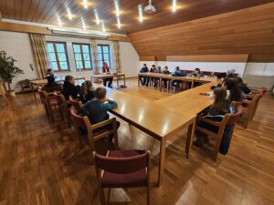 Am Freitag, den 8. November, besuchte die vierte Klasse das Rathaus der Gemeinde Marxheim. Bürgermeister Herr Schiegg führte dabei durch das Gebäude und erklärte den Viertklässlern die Aufgabenbereiche der einzelnen Ämter. Anschließend konnten die Kinder im Sitzungssaal sämtliche Fragen rund um das Thema Gemeinde stellen, welche von Herrn Schiegg ausführlich beantwortet wurden. Am Ende durften die Viertklässler einen Blick in die Gemeindebücherei werfen und bekamen als Stärkung für den Rückweg Gummibärchen geschenkt.