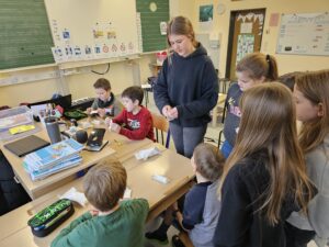 Am Donnerstag, den 25.01., sowie Donnerstag, den 06.02.2025, besuchte Frau Isabelle Schiele vom BRK Kreisverband Nordschwaben die 3. und 4. Klasse, um den Schülern in einem jeweils 90-minütigen Workshop Basiswissen im Bereich Erste Hilfe zu vermitteln. Die Kinder übten dabei in Theorie und Praxis unter anderem, wie man Wunden versorgt, Verletzte in die stabile Seitenlage bringt oder einen Notruf absetzt.