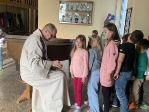 Zu Beginn der Fastenzeit kam auch heuer wieder Herr Höchenberger in unsere Schule und gestaltete eine kleine, besinnliche Aschekreuz-Feier. Nach einem Lied zeigte er anschaulich durch das Verbrennen einzelner Palmkätzchen, wie uns alle oft Krankheit, Streit, Liebeskummer oder Tod aus der Bahn werfen. Danach lud er ein, das Aschekreuz auf dem Kopf zu empfangen. „Aus Asche und Staub bist du gemacht. Doch in Gottes Liebe wächst du groß und stark.“ So der Leitspruch. Nach dem Lied „Gottes guter Segen“ fassten sich alle im Kreis an den Händen und beteten gemeinsam das Vaterunser. So sind wir nun auf die beginnende Fastenzeit gut vorbereitet und eingestimmt.