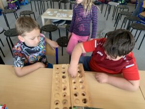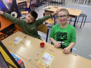 Am Freitag vor den Osterferien fand wieder unser Spiele-Projekttag statt. Jedes Kind brachte dazu sein Lieblingsspiel mit und alle Schüler hatten bis zur kleinen Pause die Möglichkeit – zunächst klassenintern und dann klassenübergreifend – die bunte Sammlung an Gesellschaftsspielen in den verschiedenen Klassenzimmern auszuprobieren. Außerdem wurde im Gang zusammen „Werwolf“ gespielt.