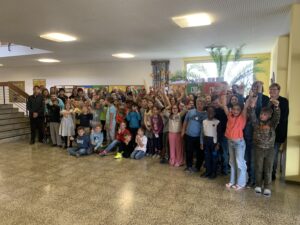 Die Grundschule Marxheim beteiligte sich in diesem Schuljahr mit großem Engagement am 55. internationalen Jugendwettbewerb der Raiffeisenbanken. Unter dem Motto: „Digital – total normal!?“ setzten sich die Schülerinnen und Schüler kreativ mit dem Thema Digitalisierung auseinander. In allen Klassenstufen entstanden vielfältige und ideenreiche Kunstwerke. Die jungen Künstlerinnen und Künstler arbeiteten mit unterschiedlichen Materialien: Holz-, Filz-, Wasserfarben, Wachsmalstifte und verschiedenste Papiere kamen ebenso zum Einsatz wie kreative Techniken, wie Spritztechnik, Faltungen und Collagen. So entstanden ganz individuelle Bildumsetzungen, die das Thema auf beeindruckende Weise widerspiegelten. Jede Klasse entwickelte eigene Ideen und setzte das Thema auf ihre eigene Art und Weise um. Die Arbeiten wurden von einer Jury begutachtet und bewertet. Die Gewinnerinnen und Gewinner durften sich über attraktive Spiele freuen. Die feierliche Preisverleihung fand im Schulhaus statt und war ein gelungener Abschluss des Wettbewerbs.
