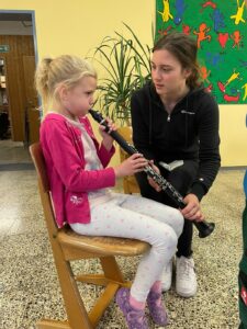 Am Freitag, den 25. Oktober, hatten die Klassen 1 bis 3 die Gelegenheit im Rahmen des Instrumentenkarussells unterschiedliche Blasinstrumente kennenzulernen. Herr Kitzinger stellte zu Beginn gemeinsam mit seinen Kollegen die unterschiedlichen Instrumente vor. Im Anschluss konnten die Kinder gruppenweise die einzelnen Instrumente näher kennenlernen und sogar ausprobieren.