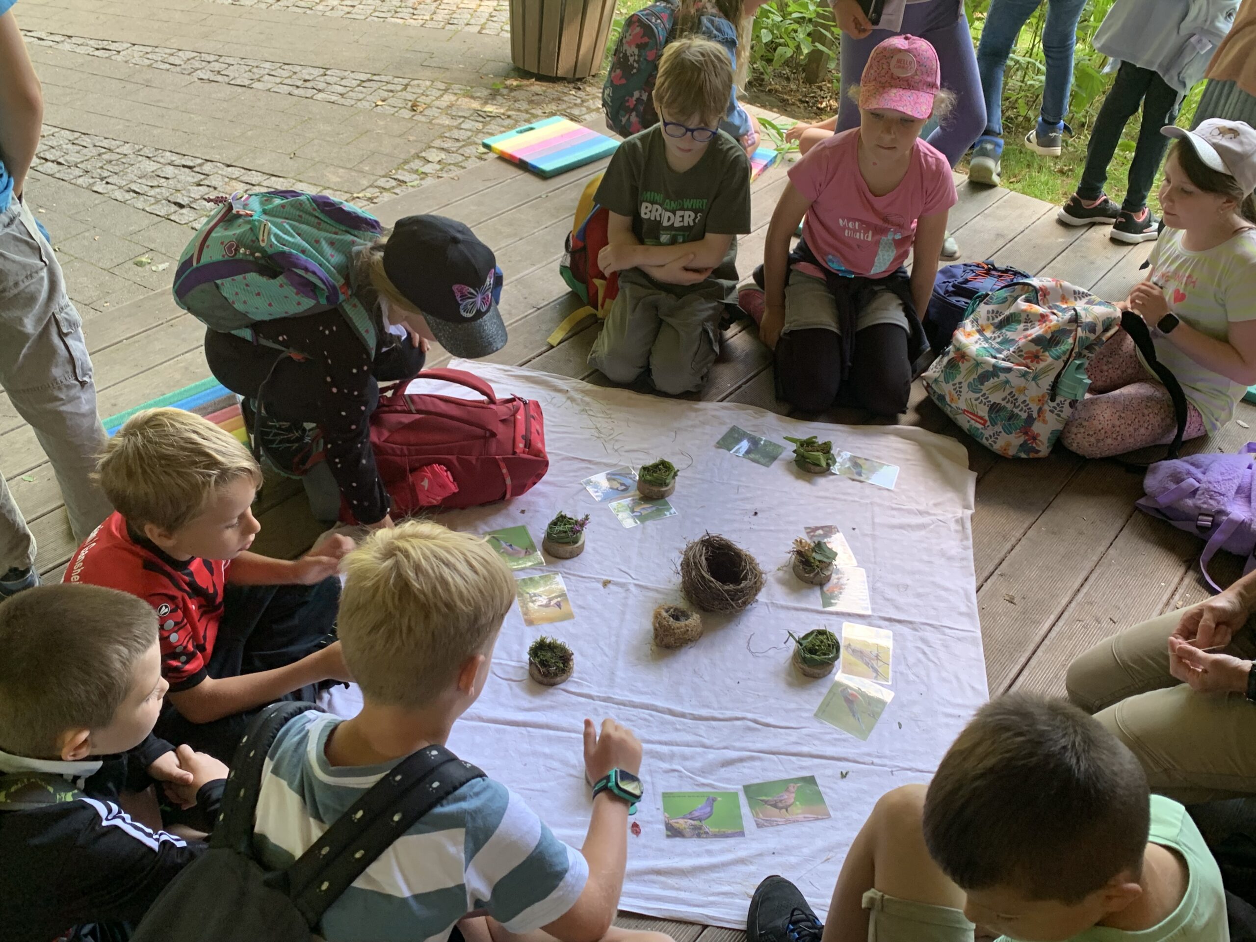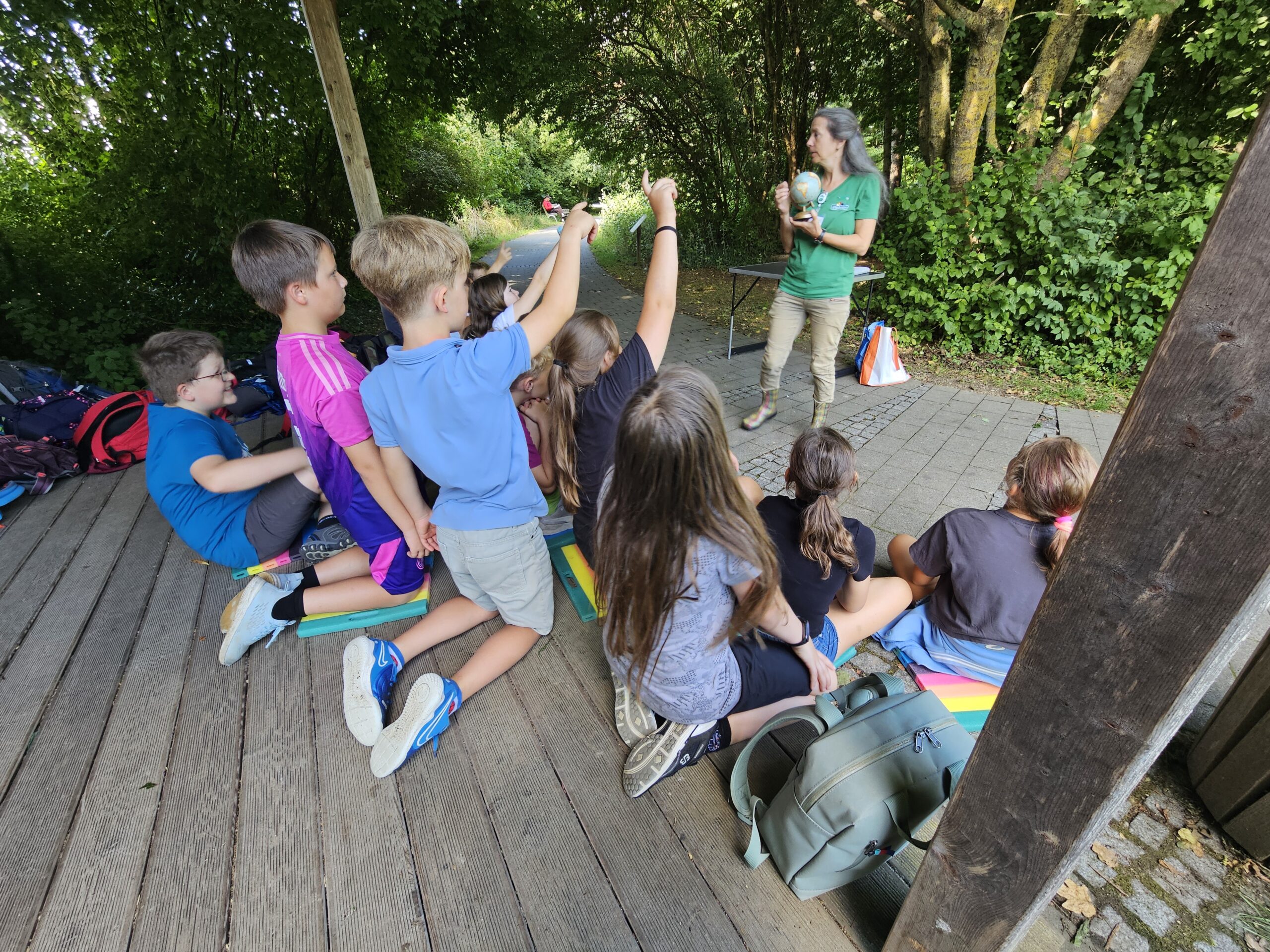 Am 23. Juli 2025 machten sich die 1. bis 4. Klasse auf den Weg zum Dehner in Rain. Dort durfte jede Klasse an einem Workshop im Naturlehrgarten teilnehmen, um verschiedene Lebensräume der Natur näher kennenzulernen. Die 1. Klasse beschäftigte sich dazu mit den Bewohnern und Pflanzen der Wiese, die 2. Klasse erforschte die Hecke, die 3. Klasse vertiefte ihr Wissen rund um den Wald und die 4. Klasse untersuchte den Lebensraum Wasser. Auf dem Spielplatz des Dehner konnten sich die Kinder in den Pausen noch ausgiebig austoben.