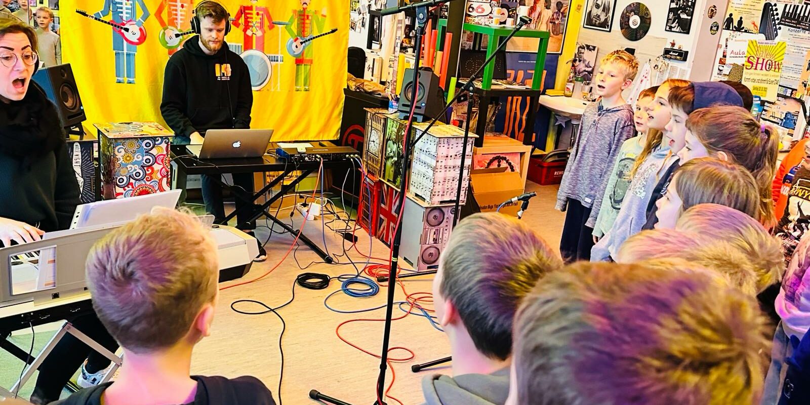 Im November 2023 produzierten die SchülerInnen der Marxheimer Grundschule in Kooperation mit der Musikschule Polleichtner eine CD mit Liedern für die Weihnachtszeit. Zunächst mussten alle Klassen ihre musikalischen Beiträge üben. Die Einstudierungen der Chorlieder übernahmen Judith Kastner, Katharina Rehm und Andrea Jakob. Zwischen den Chorliedern sind Instrumental- und Gesangssolisten, die von Josef Polleichtner, Nadine Eimecke und Ingrid Fischer angeleitet wurden, zu hören, außerdem Bläser-Ensembles von Erwin Kitzinger und Alexander Grossnick. Nachdem Josef Polleichtner seinen Musikschulraum mit professionellem Equipment zum hauseigenen Tonstudio umfunktioniert hatte, wurden zunächst außerhalb der Schulzeiten Playback-Aufnahmen erstellt. Anschließend durften alle beteiligten SchülerInnen sowie die einzelnen Klassen im Tonstudio ihre Beiträge aufnehmen. Das erforderte höchste Konzentration und Aufmerksamkeit, damit die Aufnahmen nicht allzu oft wiederholt werden mussten und der doch recht straffe Zeitplan eingehalten werden konnte. Nachdem alle Audios aufgezeichnet worden sind, mussten diese nachbearbeitet und zusammengeschnitten werden. Dabei wurden wir von Josef Polleichtner, Georg Breimair und Chris Waldmüller unterstützt. Heraus kam eine bunte Sammlung an weihnachtlichen Instrumentalstücken und Liedern – musiziert von SchülerInnen der Julian Knogler Grundschule, welche man als Download-Code sowie als CD erwerben kann. Vielen Dank an alle Beteiligten für das außerordentliche Engagement, mithilfe dessen eine einzigartige musikalische Erinnerung entstanden ist.