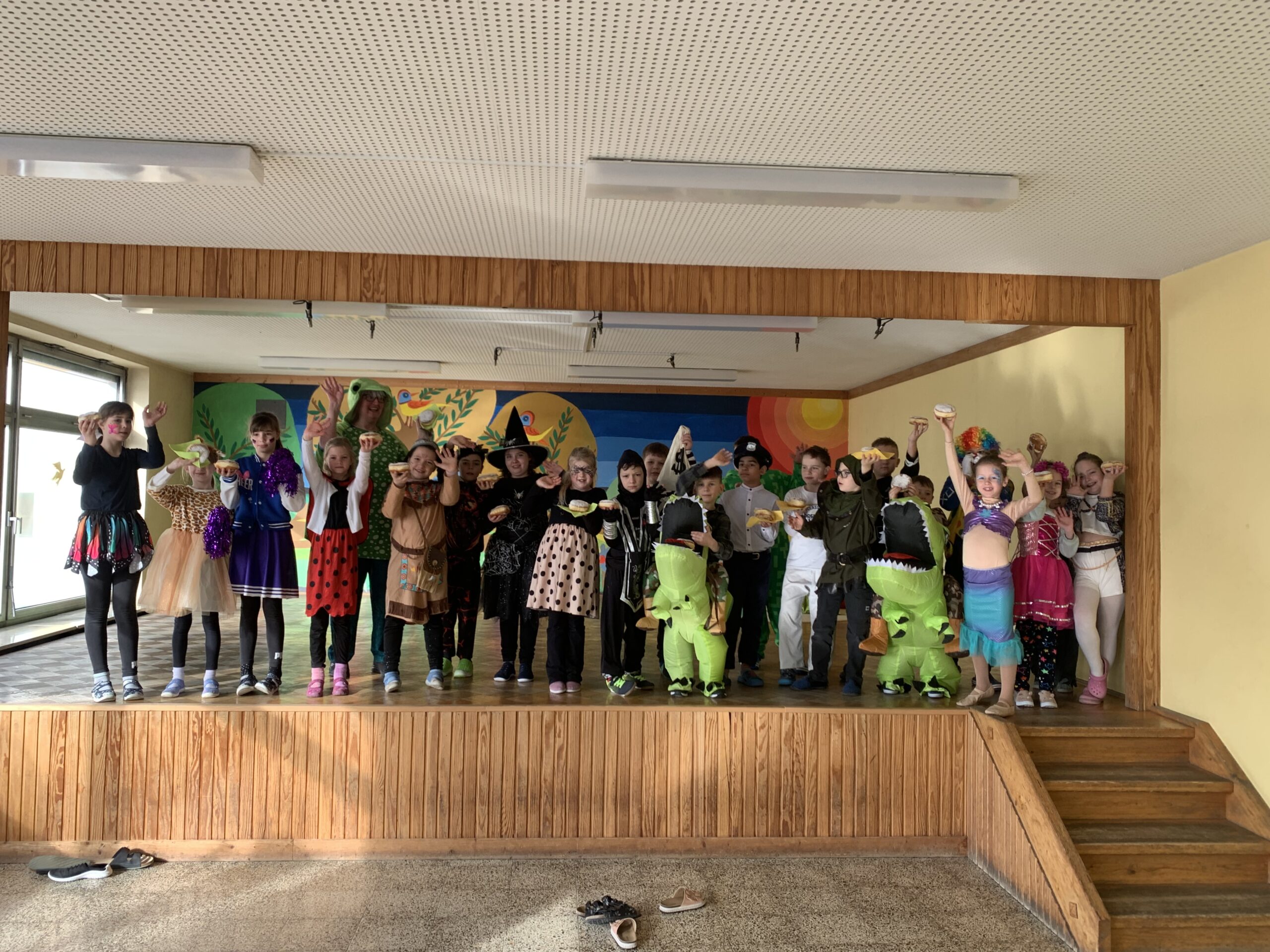 Am Freitag vor den Winterferien war die Grundschule Marxheim erfüllt von buntem Faschingstreiben. Zunächst präsentierte die Garde Hafenreut ihr vielfältiges Kinder-Showprogramm in der Turnhalle. Anschließend begaben sich alle Kinder in die Aula. Dort konnte zur Faschingsmusik getanzt werden und jedes Maskerle durfte sich mit Krapfen – gesponsert von der Firma Häckl und organisiert vom Elternbeirat – stärken.