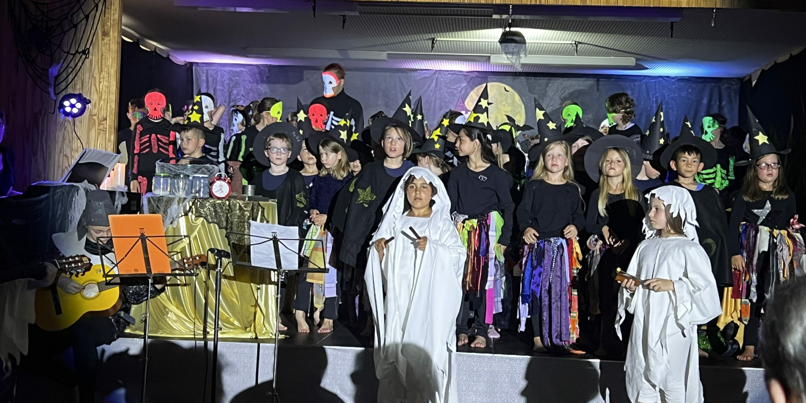 Am Freitag, den 28. Juni 2024 fand an der Grundschule Marxheim das Sommerfest mit einer gespenstischen Musicalaufführung statt. Um die Atmosphäre zu unterstützen, wurde die Aula im Grusellook geschmückt.