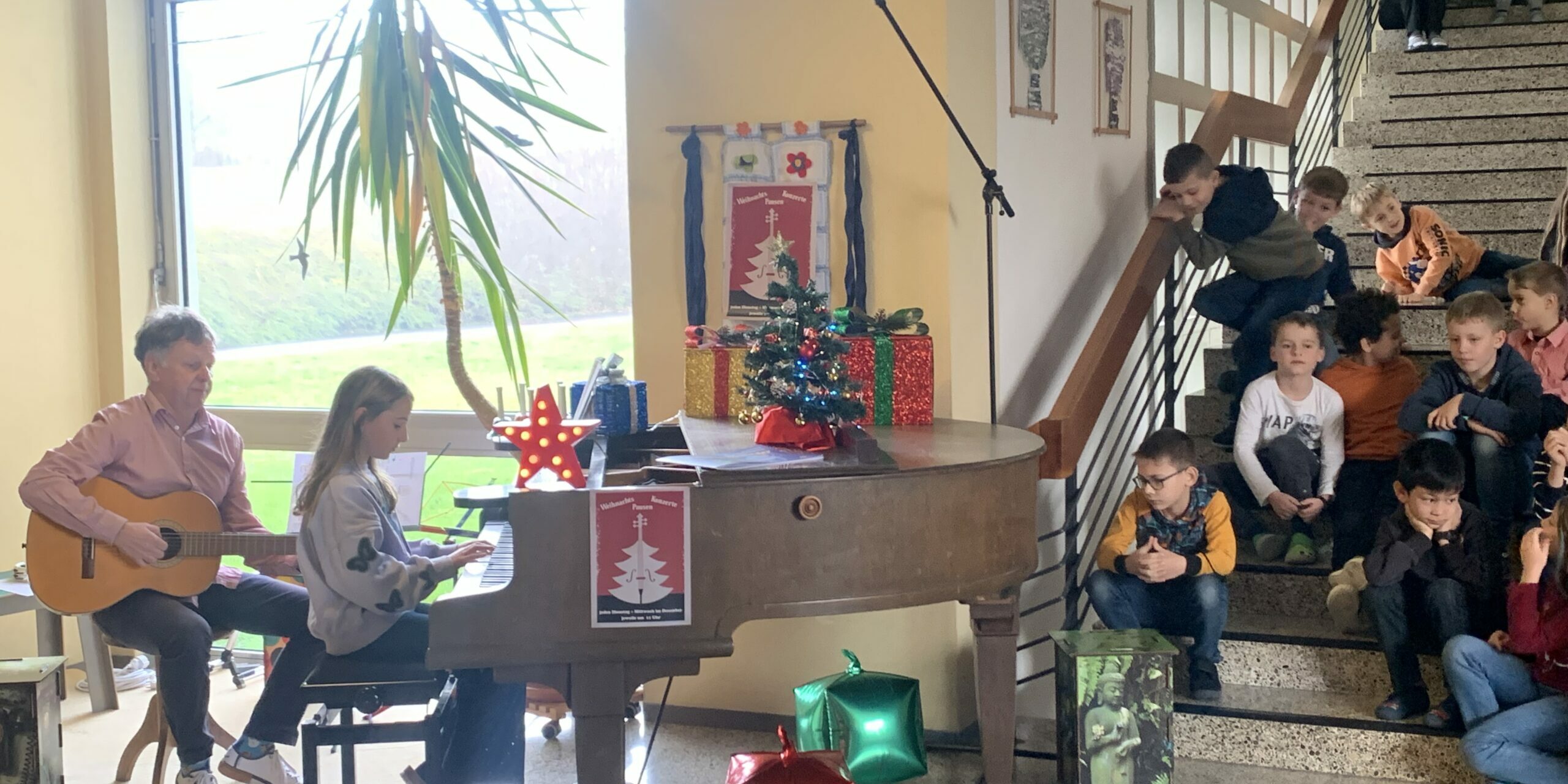 Jeden Dienstag und Mittwoch in der Adventszeit fanden in der kleinen Pause wieder unsere Pausenkonzerte unter der Leitung von Herrn Polleichtner statt. Alle Kinder, die sich beteiligen wollten, konnten dabei im Rahmen dieser fünf Konzerte auf ihrem persönlichen Instrument der Schulgemeinschaft ein Weihnachtslied vorspielen und erhielten dafür viel Applaus. So kamen wir durch diese Liveauftritte im Schulhaus fortwährend in den Adventswochen in den Genuss von Weihnachtsmusik.